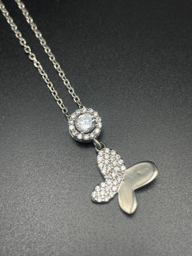 اویز و گردنبند زنانه نقره اب رادیوم طرح پروانه