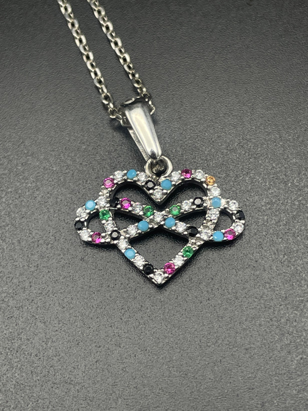 اویز و گردنبند زنانه نقره اب رادیوم طرح قلب